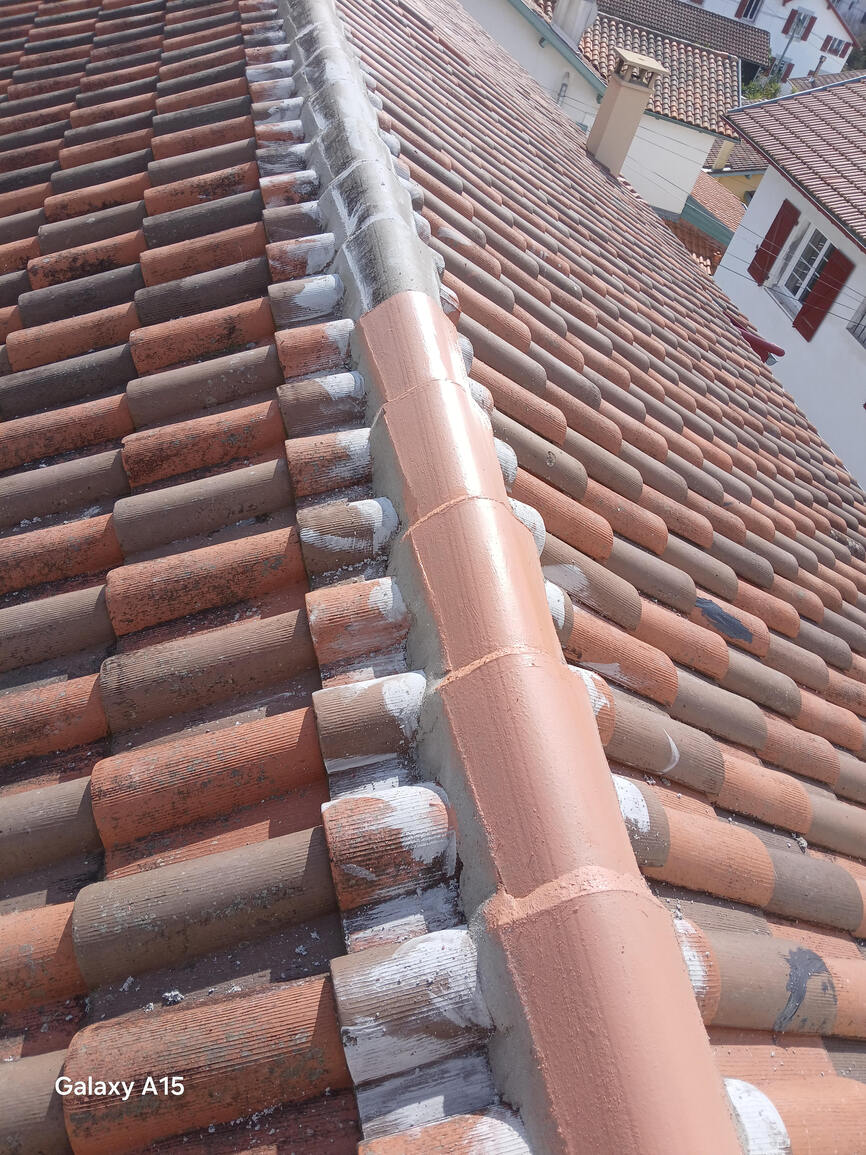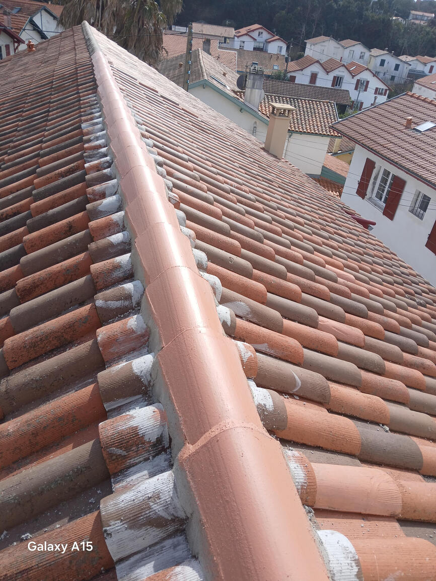 Remise en scellement du faîtage et changement des tuiles faîtières, chantier réalisé à Biarritz.